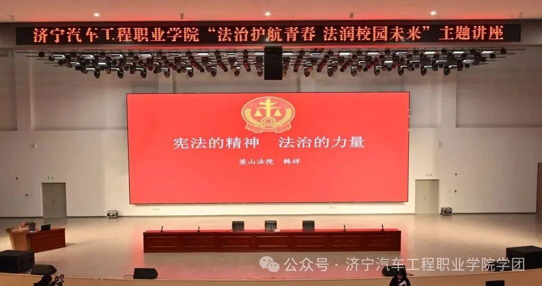 为进一步提升大学生的宪法意识和法治观念,推动法治精神在校园内深耕厚植、落地见效,2025年12月4日下午,我校在报告厅成功举办了一场以“法治护航青春,法润校园未来”为主题的宪法普法讲座。本次讲座由学生工作处、通识教育部联合发起,特邀梁山县法院韩祥庭长担任主讲人,我校智能汽车系丁国凤老师主持。讲座内容紧密契合大学生的成长特点,将宪法的核心要义与生动案例有机结合,为现场同学们呈现了一堂既精彩又深刻的法治教育课。
